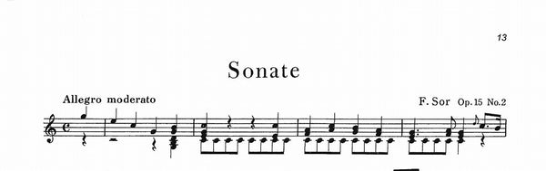 【PDF楽譜】ソル:Op.15-2 ソナタ (標準版ソルギター曲集1ソナタ集より)解説付き