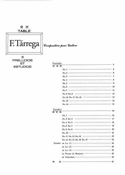 【PDF楽譜】標準版ターレガギター曲集3 前奏曲と練習曲/中野二郎・監修