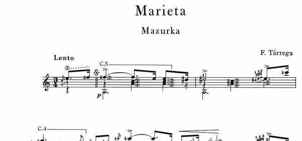 【PDF楽譜】タレガ:マリエータ(マズルカ) (標準版ターレガギター曲集2 オリジナル編2より) 解説付き