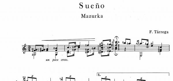 【PDF楽譜】タレガ:夢(マズルカ) (標準版ターレガギター曲集2 オリジナル編2より) 解説付き